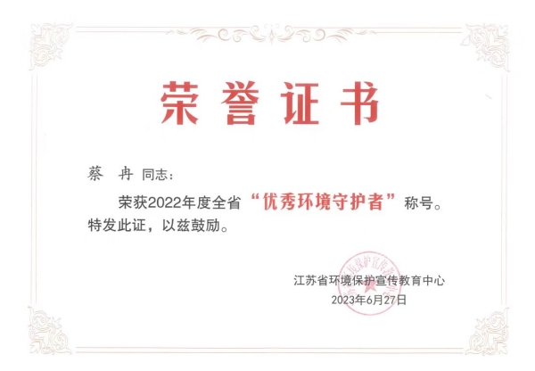 近日,省環境保護宣傳教育中心公布了2022年度省優秀“環境守護者”名單,省環保集團宿遷有限公司運營中心員工蔡冉榮登榜單。