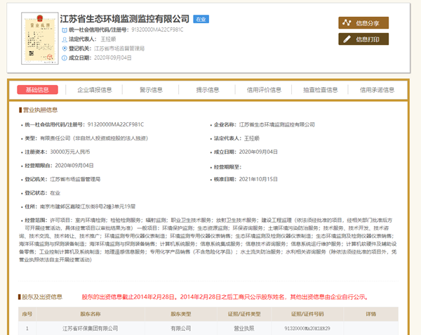 江蘇省生態環境監測監控有限公司2021年度信息公開事項